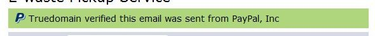 Emails from eBay and PayPal are now being protected by Truedomain, which means you’ll see the green Truedomain protection bar when you view these emails in the web interface.