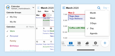 With our new design, you’ll know where to tap to change how you view your calendars by month, week, or day. You’ll see it right away!