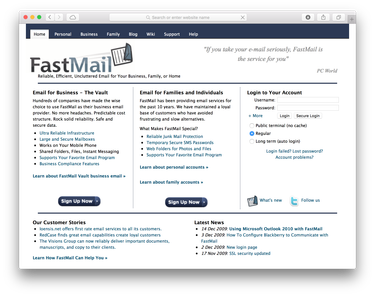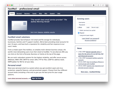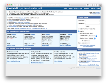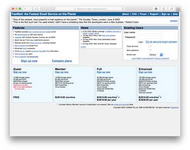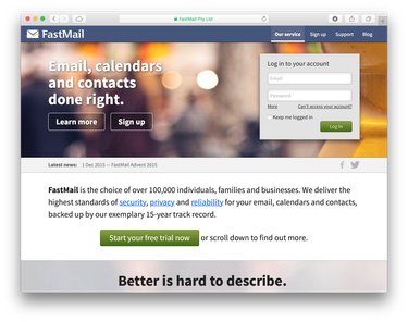 Fastmail is one of the oldest email services still in existence today. The internet of 2015 is a very different place to that of 1999 when we were first getting started, and unsurprisingly our homepage has changed a lot over that time too! So for a bit of fun (and with much thanks to the Internet Archive), we thought it would be interesting to take a trip down memory lane and take a look at how it evolved. Even if some of those earlier versions are now somewhat embarrassing…