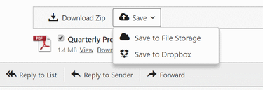 You can even save files sent to you in an attachment to your Dropbox account. Select the attachment by ticking the checkbox, then you can choose to save the file to Dropbox.