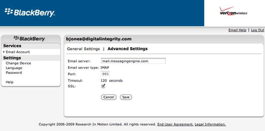 The following shows two screen shots from the Blackberry website demonstrating the proper configuration.