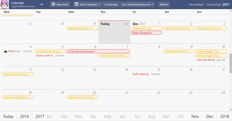 Of all our products, only Fastmail has any built-in calendaring (… so far …), and there’s a number of different ways you can put one to use.