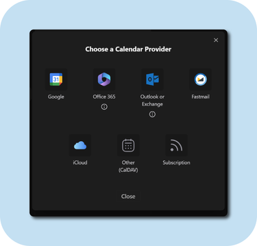 For instance, if you use Fastmail for your personal calendar and Outlook at work, you sync private events into that Outlook calendar from Fastmail. The details of these events will not be imported into Outlook, keeping them private, but making clear to your team that you’re not available then.