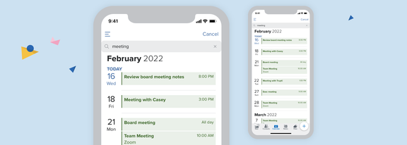 Search your calendar and find what you need fast. Calendar views let you see your life by day, week, and month.
