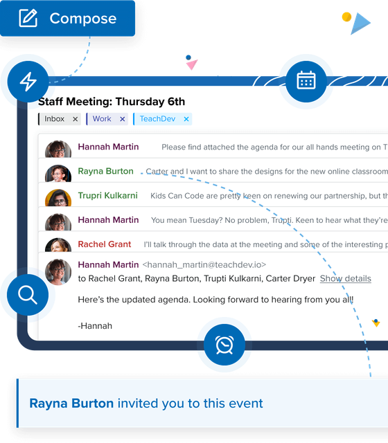 You get all this speed no matter which email client you choose to use, but we go even further with our own app and webmail. Adaptive preloading and optimistic updates for latency compensation make almost every action instant.